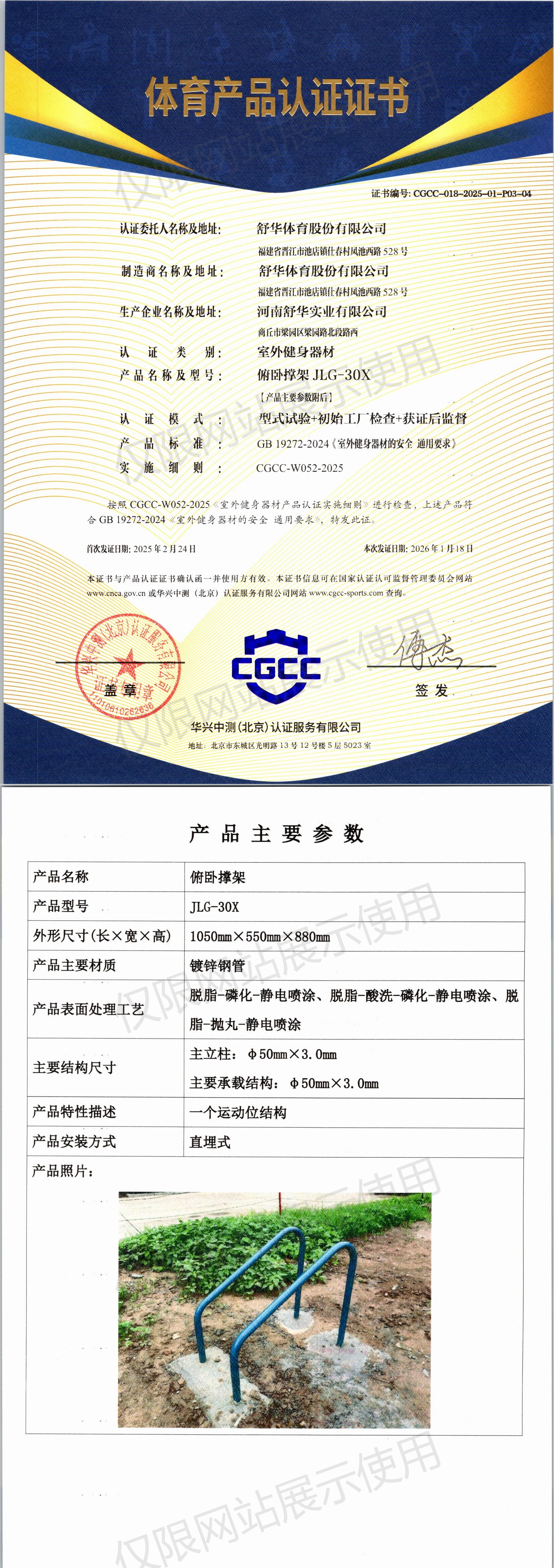 | 3 | 舒华体育股份有限公司 | CGCC-018-2025-01-P03-04 | 俯卧撑架 | JLG-30X | 商丘市梁园区梁园路北段路西 | GB 19272-2024 | 2025-02-24 | 有效 | 查看 |