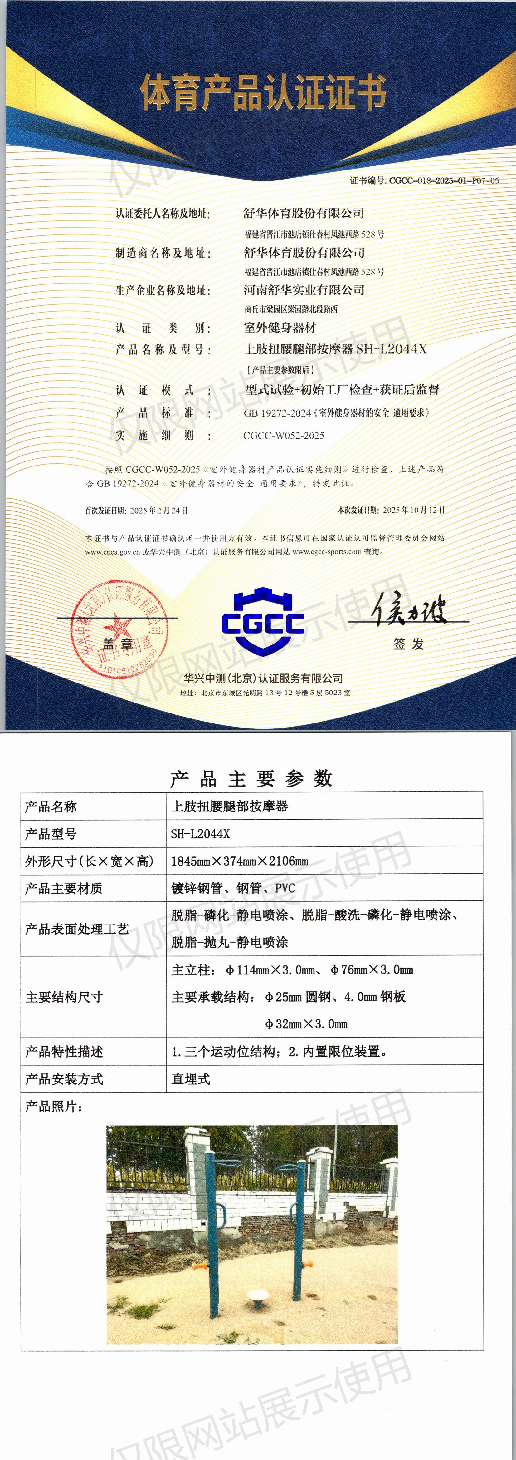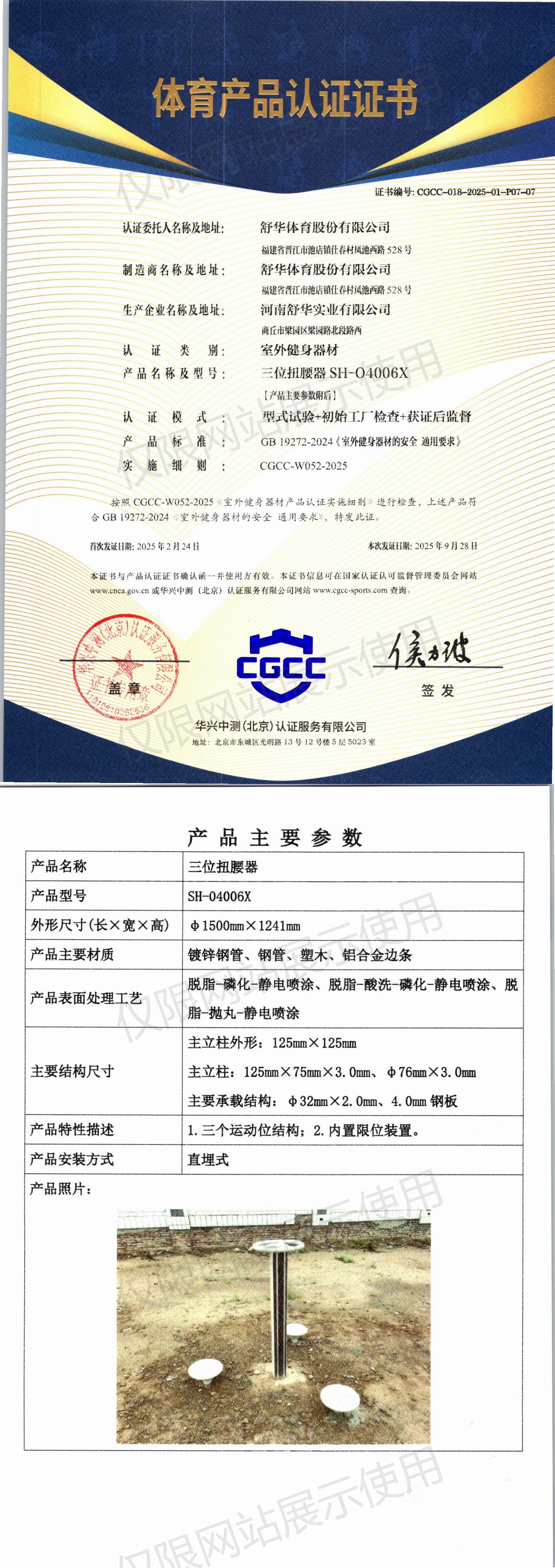 | 5 | 舒华体育股份有限公司 | CGCC-018-2025-01-P07-07 | 三位扭腰器 | SH-O4006X | 商丘市梁园区梁园路北段路西 | GB 19272-2024 | 2025-02-24 | 有效 | 查看 |