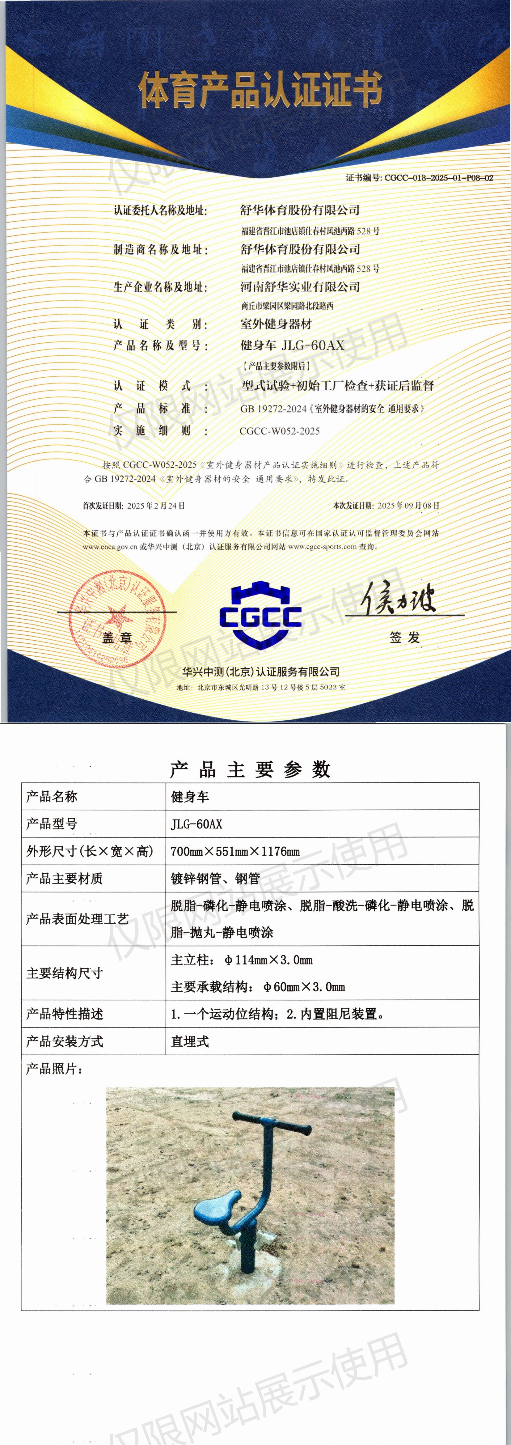 | 8 | 舒华体育股份有限公司 | CGCC-018-2025-01-P08-02 | 健身车 | JLG-60AX | 商丘市梁园区梁园路北段路西 | GB 19272-2024 | 2025-02-24 | 有效 | 查看 |