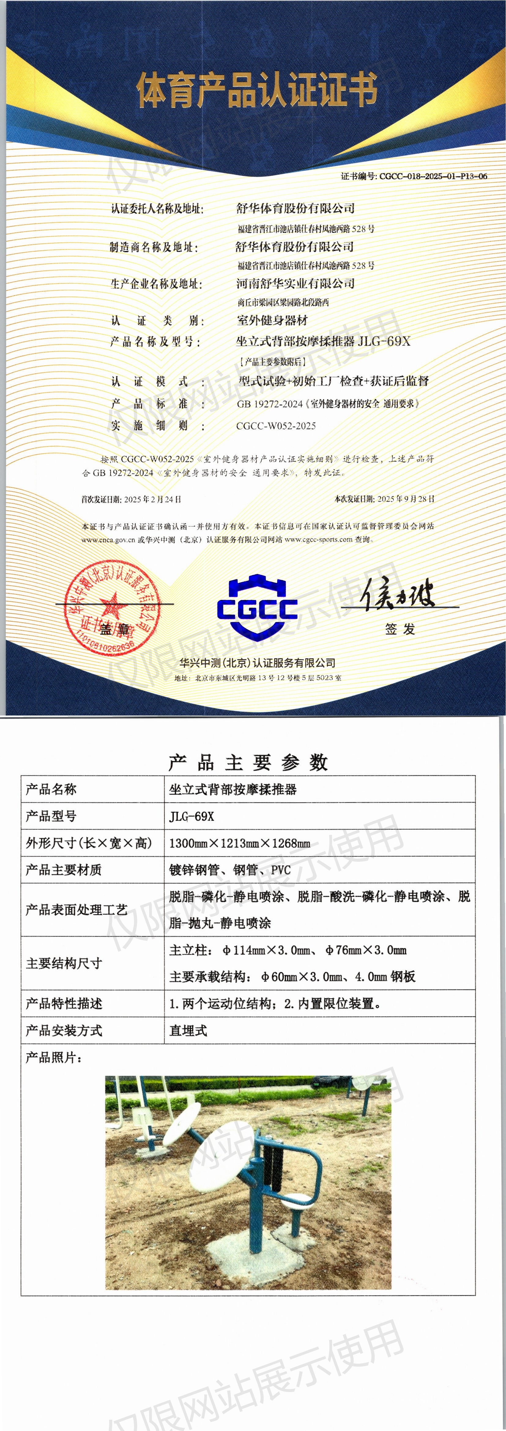 | 5 | 舒华体育股份有限公司 | CGCC-018-2025-01-P13-06 | 坐立式背部按摩揉推器 | JLG-69X | 商丘市梁园区梁园路北段路西 | GB 19272-2024 | 2025-02-24 | 有效 | 查看 |