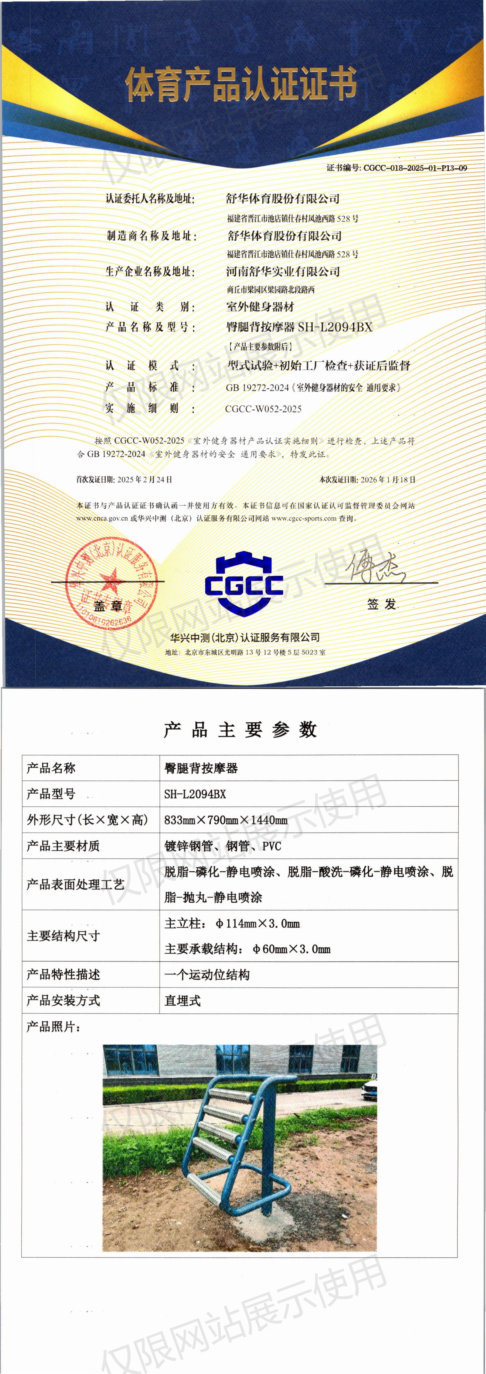 | 4 | 舒华体育股份有限公司 | CGCC-018-2025-01-P13-05 | 四联压腿按摩器 | JLG-40X | 商丘市梁园区梁园路北段路西 | GB 19272-2024 | 2025-02-24 | 有效 | 查看 |