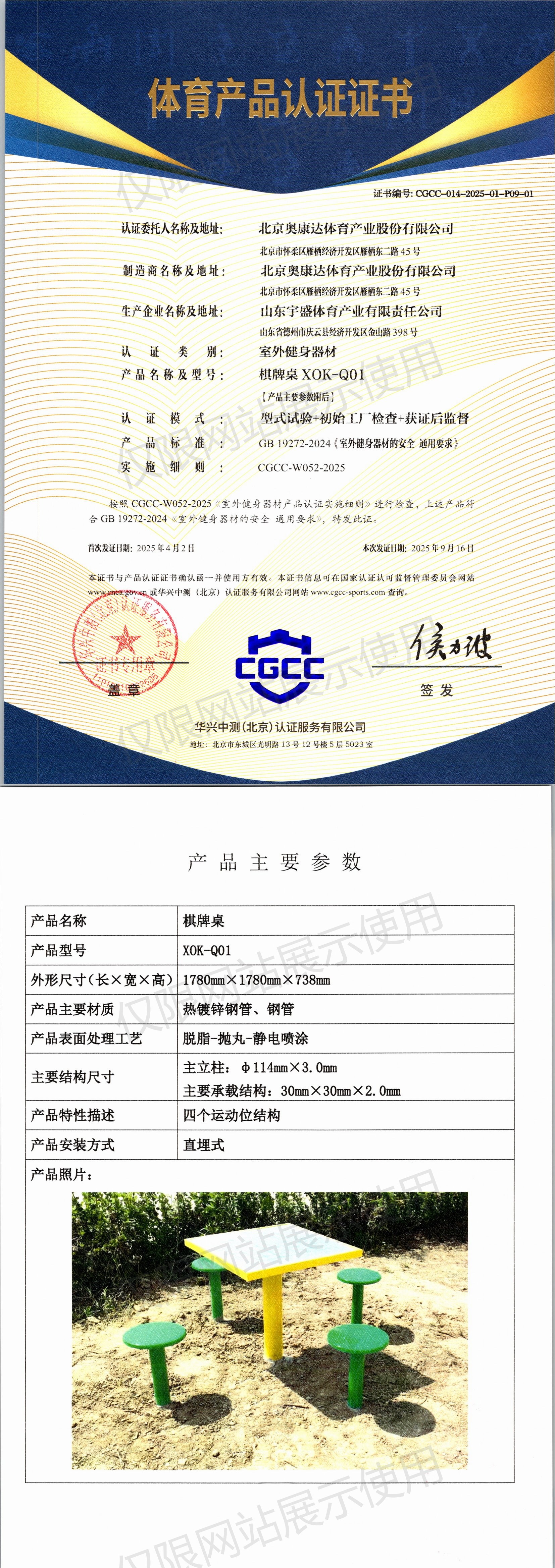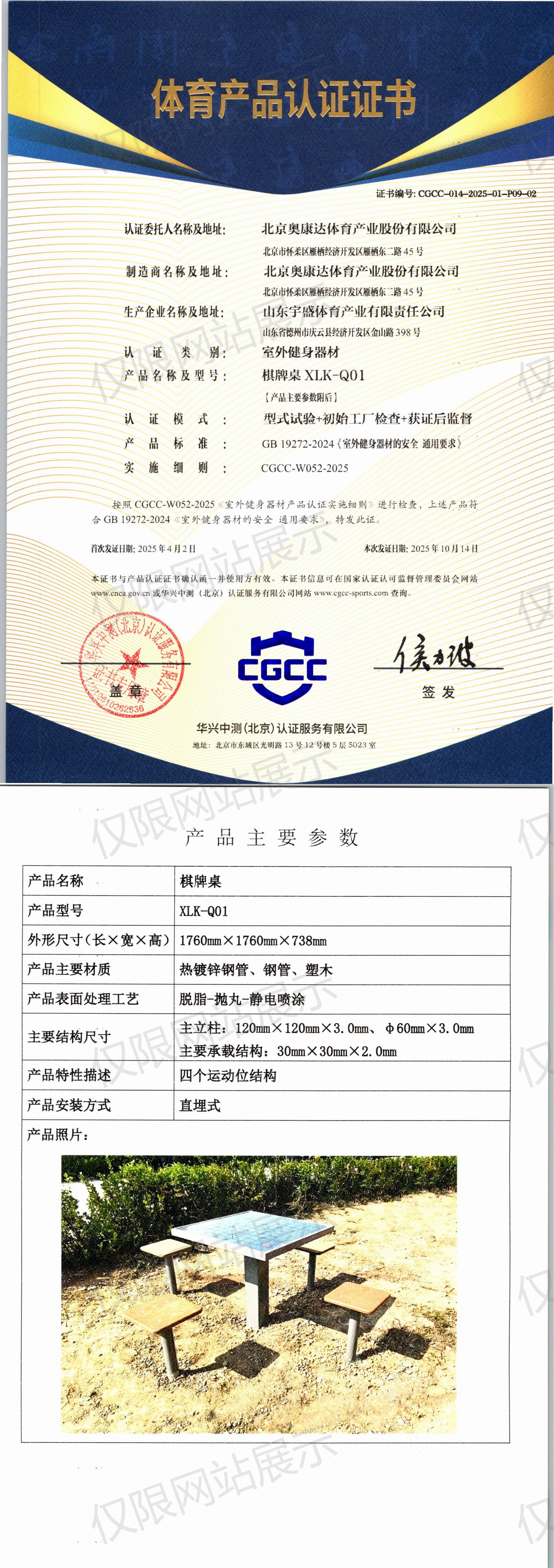 | 2 | 北京奥康达体育产业股份有限公司 | CGCC-014-2025-01-P09-02 | 棋牌桌 | XLK-Q01 | 山东省德州市庆云县经济开发区金山路398号 | GB 19272-2024 | 2025-04-02 | 有效 | 查看 |