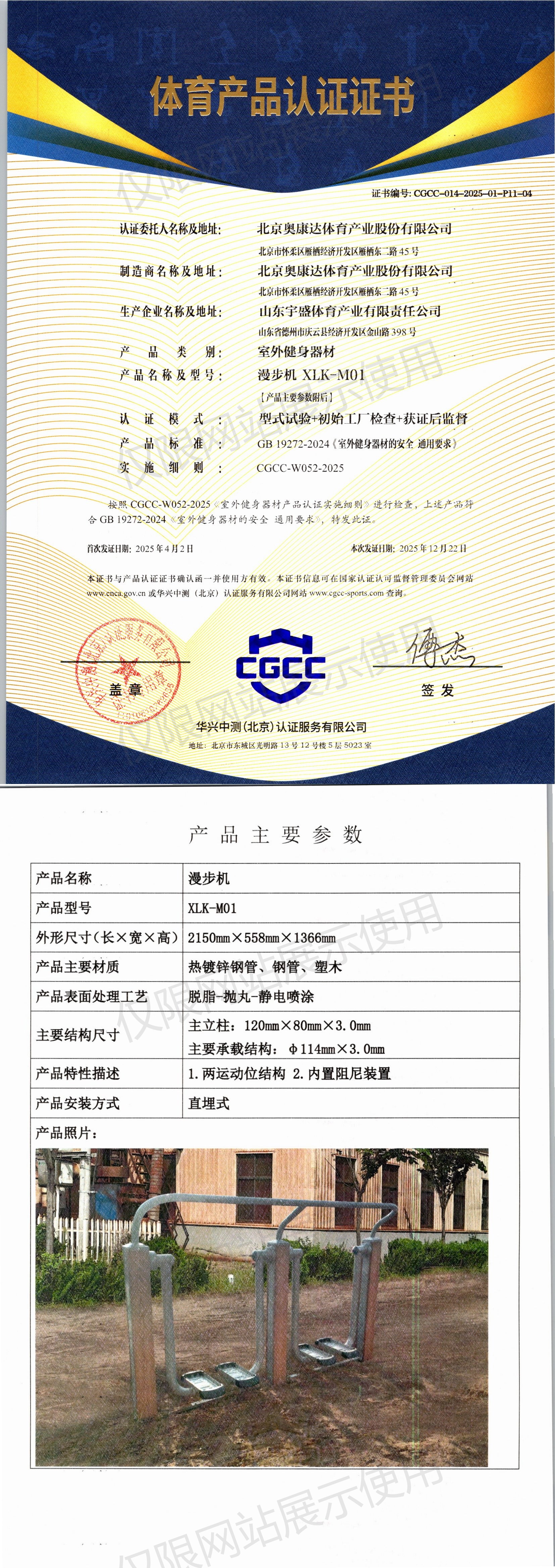 | 1 | 北京奥康达体育产业股份有限公司 | CGCC-014-2025-01-P11-04 | 漫步机 | XLK-M01 | 山东省德州市庆云县经济开发区金山路398号 | GB 19272-2024 | 2025-04-02 | 有效 | 查看 |