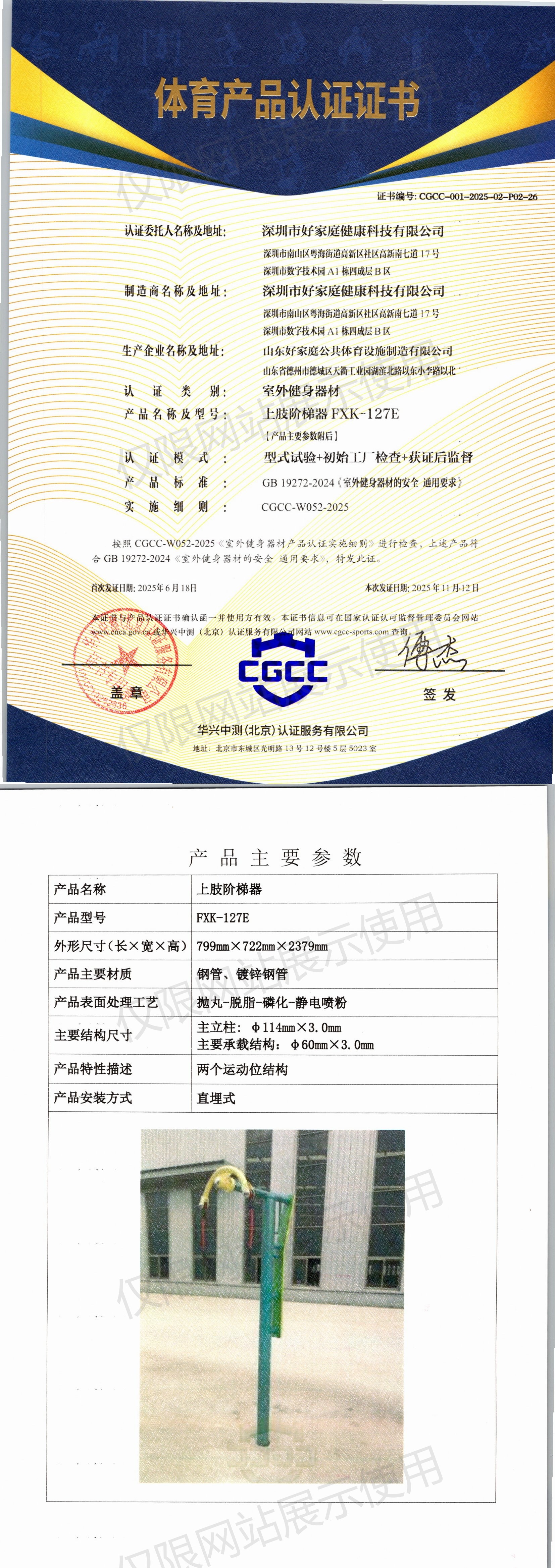 | 2 | 深圳市好家庭健康科技有限公司 | CGCC-001-2025-02-P02-26 | 上肢阶梯器 | FXK-127E | 山东省德州市德城区天衢工业园湖滨北路以东小李路以北 | GB 19272-2024 | 2025-06-18 | 有效 | 查看 |