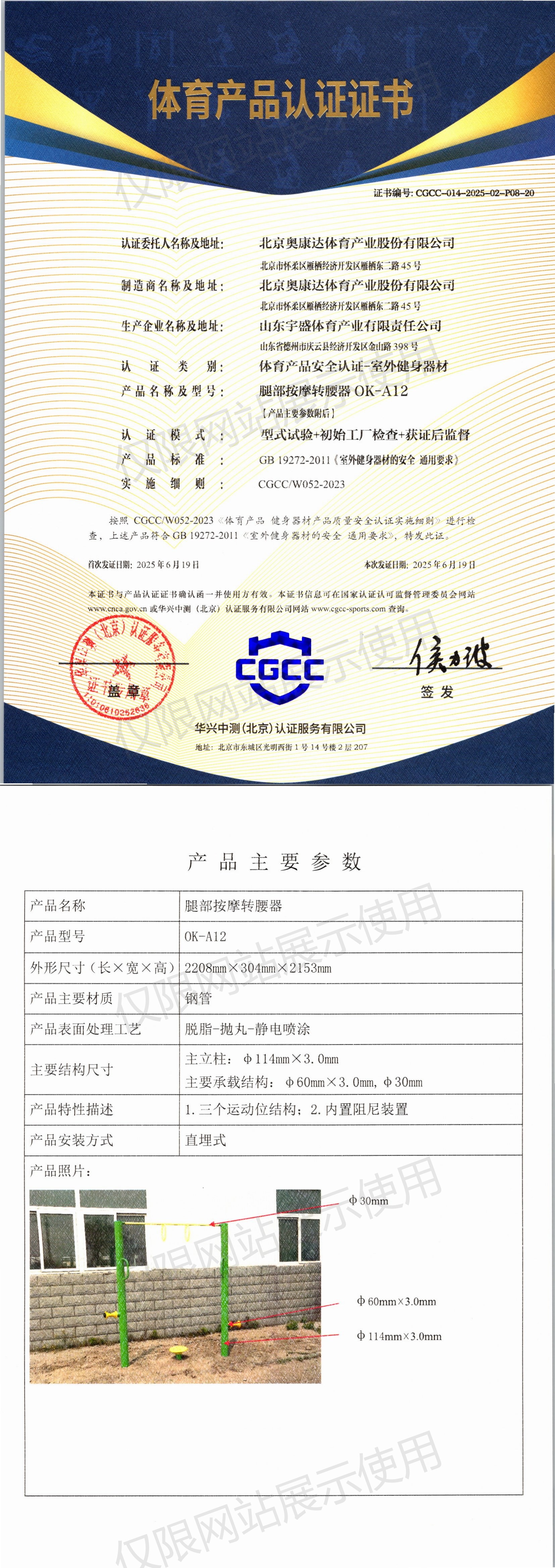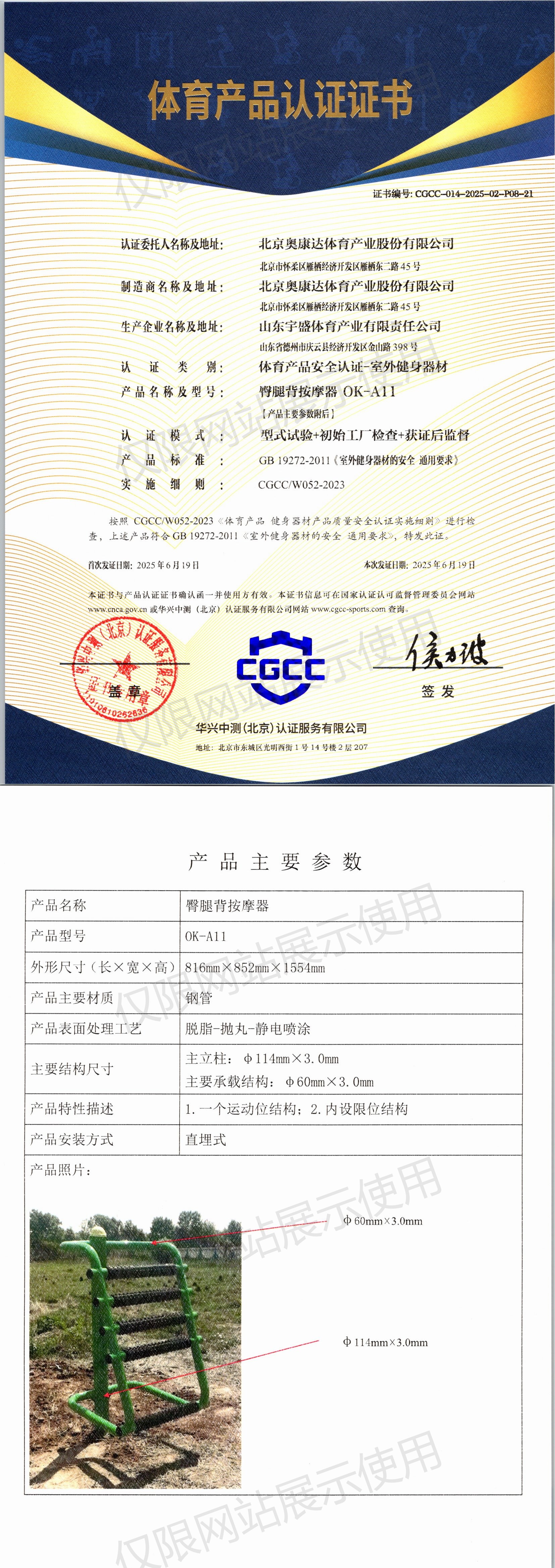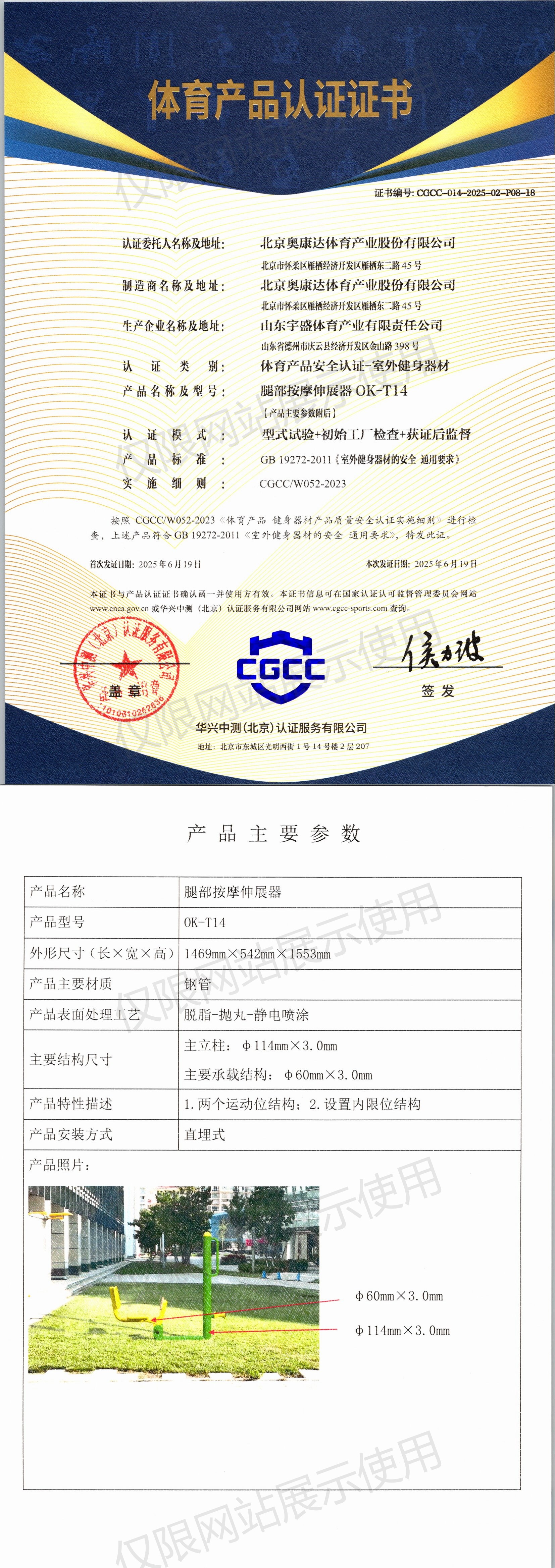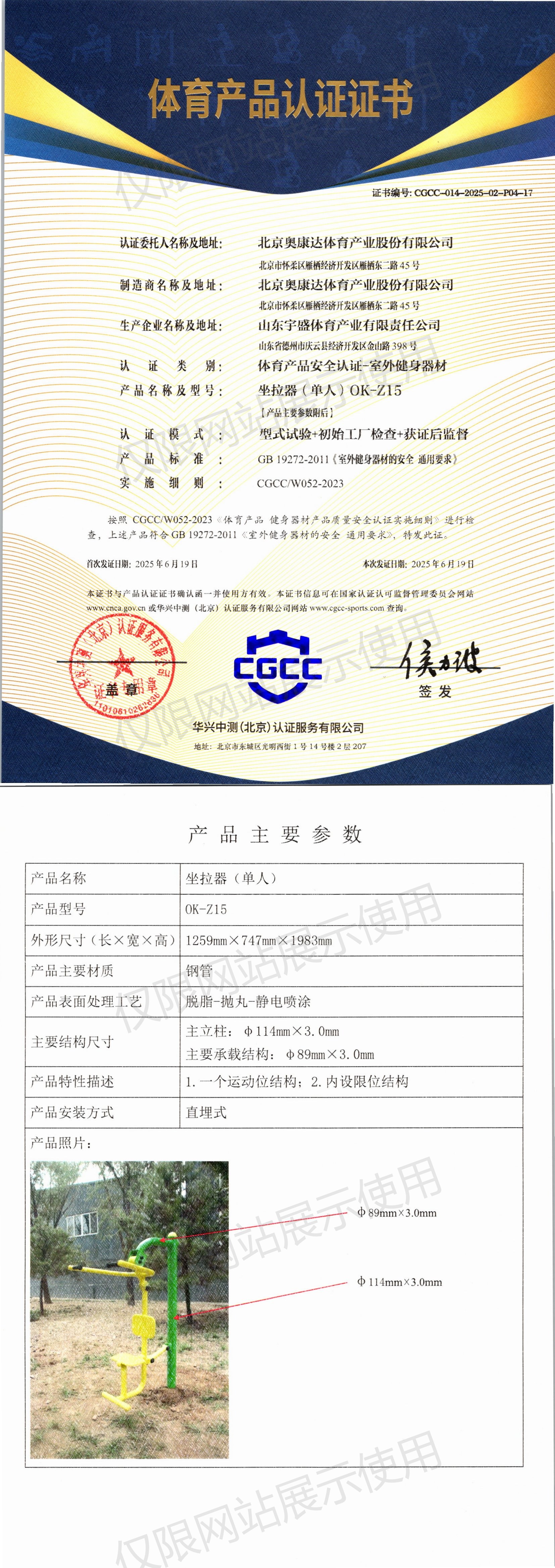 | 1 | 北京奥康达体育产业股份有限公司 | CGCC-014-2025-02-P04-17 | 坐拉器(单人) | OK-Z15 | 山东省德州市庆云县经济开发区金山路398号 | GB 19272-2011 | 2025-06-19 | 有效 | 查看 |