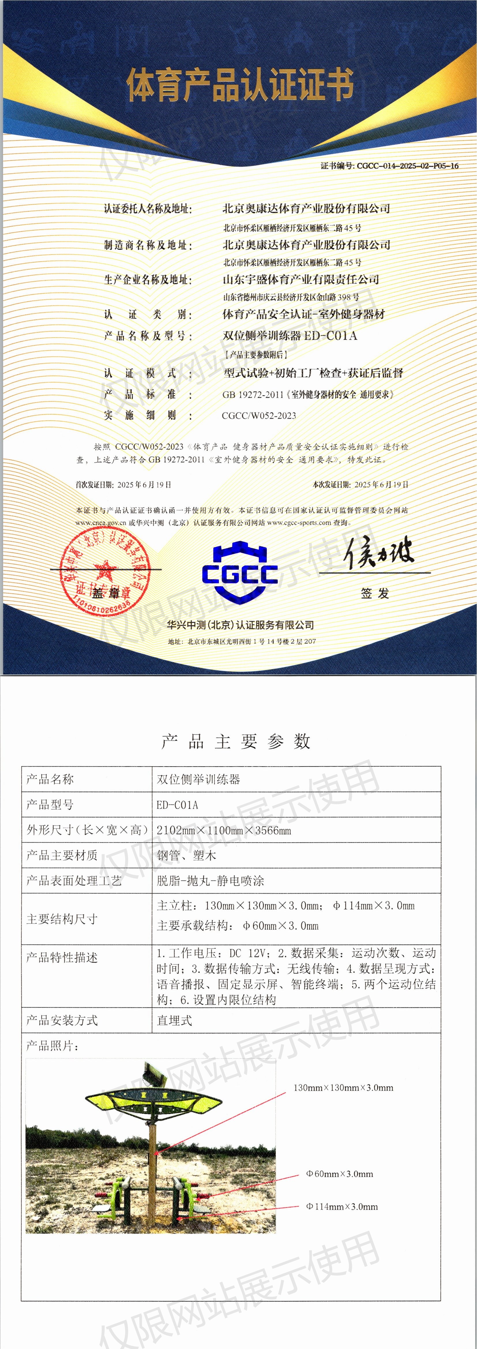 | 2 | 北京奥康达体育产业股份有限公司 | CGCC-014-2025-02-P05-16 | 双位侧举训练器 | ED-C01A | 山东省德州市庆云县经济开发区金山路398号 | GB 19272-2011 | 2025-06-19 | 有效 | 查看 |