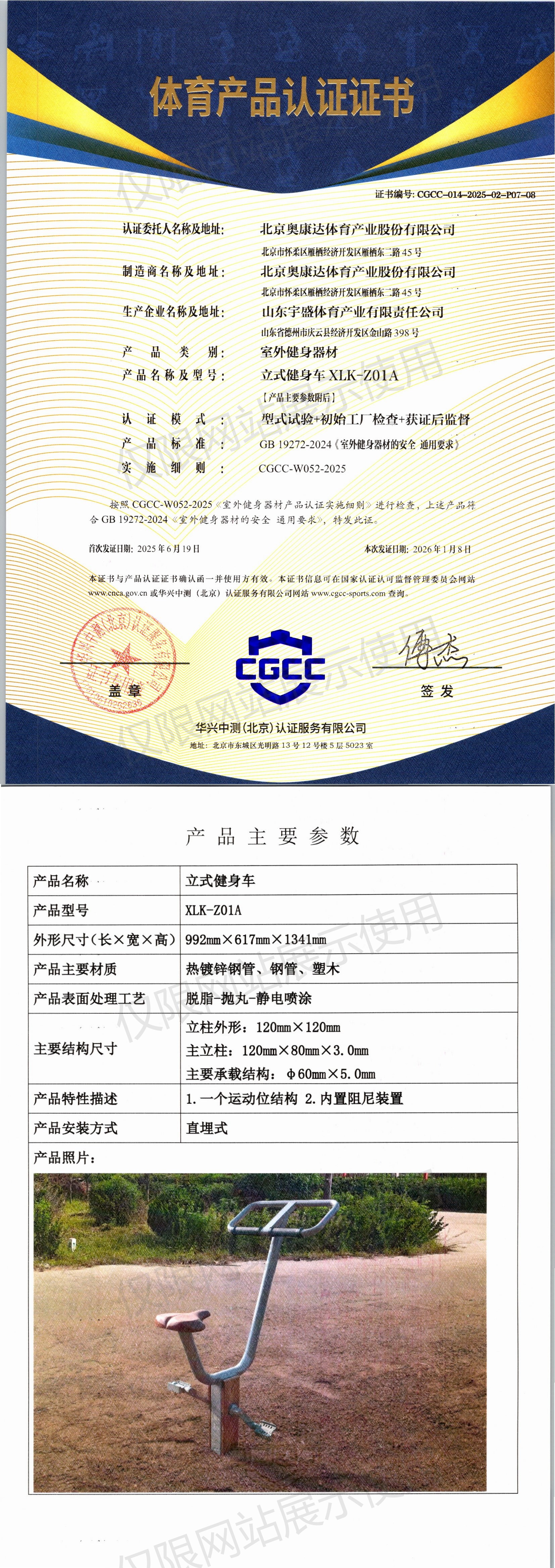 | 4 | 北京奥康达体育产业股份有限公司 | CGCC-014-2025-02-P07-08 | 立式健身车 | XLK-Z01A | 山东省德州市庆云县经济开发区金山路398号 | GB 19272-2024 | 2025-06-19 | 有效 | 查看 |