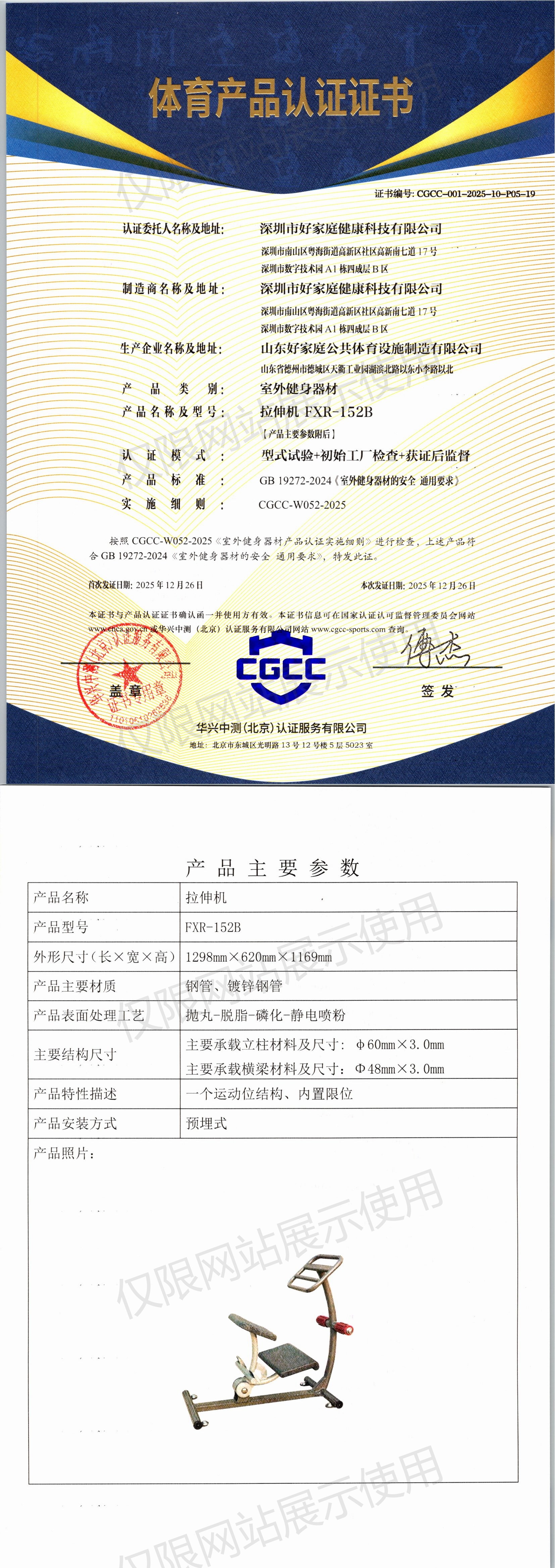 | 3 | 深圳市好家庭健康科技有限公司 | CGCC-001-2025-10-P05-19 | 拉伸机 | FXR-152B | 山东省德州市德城区天衢工业园湖滨北路以东小李路以北 | GB 19272-2024 | 2025-12-26 | 有效 | 查看 |