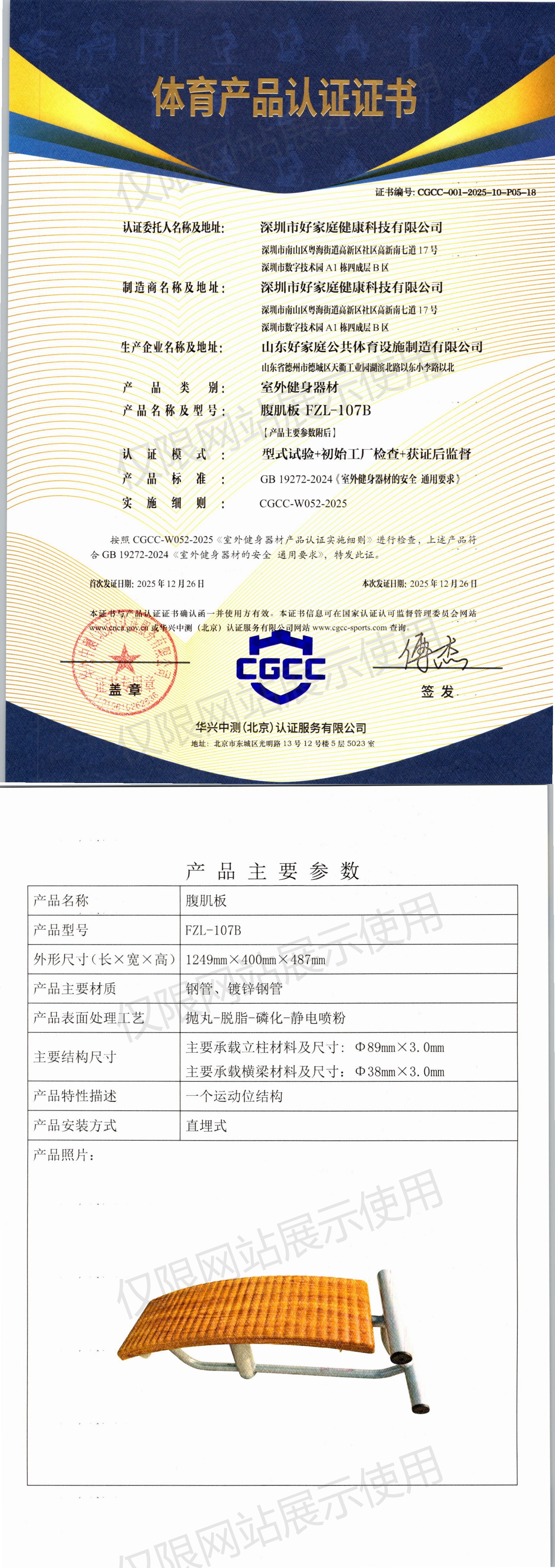 | 2 | 深圳市好家庭健康科技有限公司 | CGCC-001-2025-10-P05-18 | 腹肌板 | FZL-107B | 山东省德州市德城区天衢工业园湖滨北路以东小李路以北 | GB 19272-2024 | 2025-12-26 | 有效 | 查看 |
