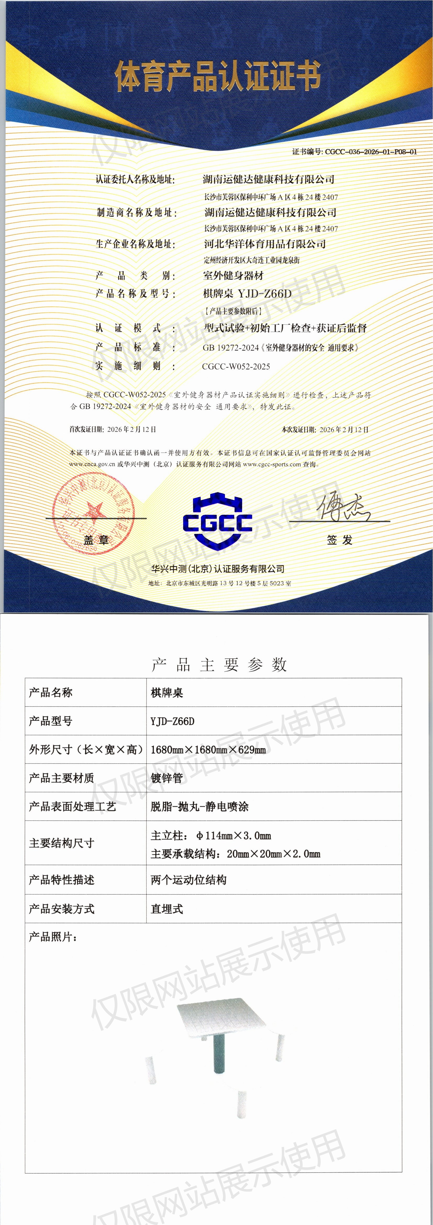 | 2 | 湖南运健达健康科技有限公司 | CGCC-036-2026-01-P08-01 | 棋牌桌 | YJD-Z66D | 定州经济开发区大奇连工业园龙泉街 | GB 19272-2024 | 2026-02-12 | 有效 | 查看 |