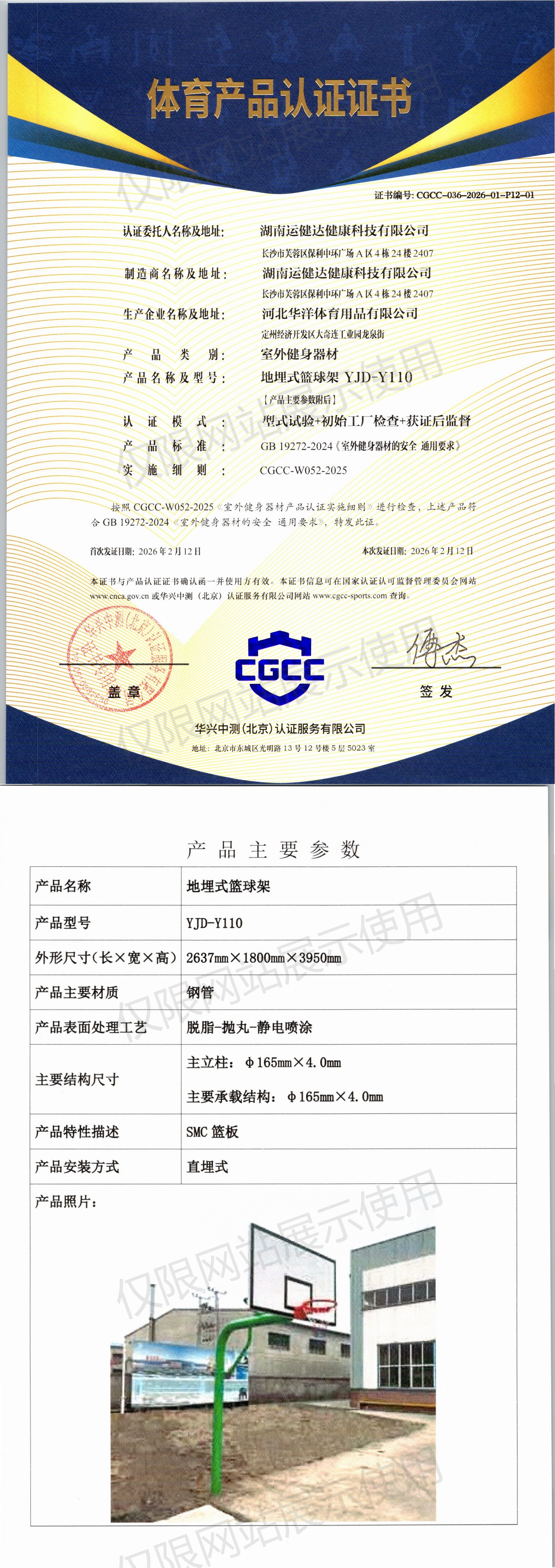 | 10 | 湖南运健达健康科技有限公司 | CGCC-036-2026-01-P12-01 | 地埋式篮球架 | YJD-Y110 | 定州经济开发区大奇连工业园龙泉街 | GB 19272-2024 | 2026-02-12 | 有效 | 查看 |