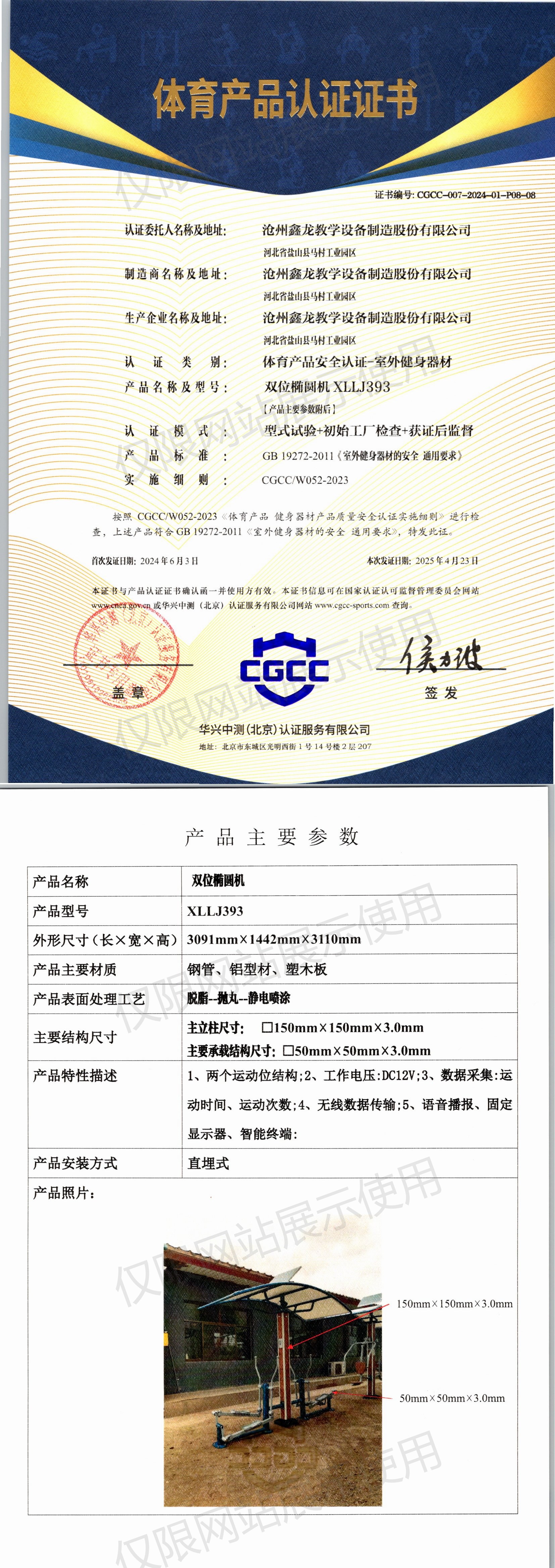 | 1 | 沧州鑫龙教学设备制造股份有限公司 | CGCC-007-2024-01-P08-08 | 双位椭圆机 | XLLJ393 | 河北省盐山县马村工业园区 | GB 19272-2011 | 2024-06-03 | 有效 | 查看 |