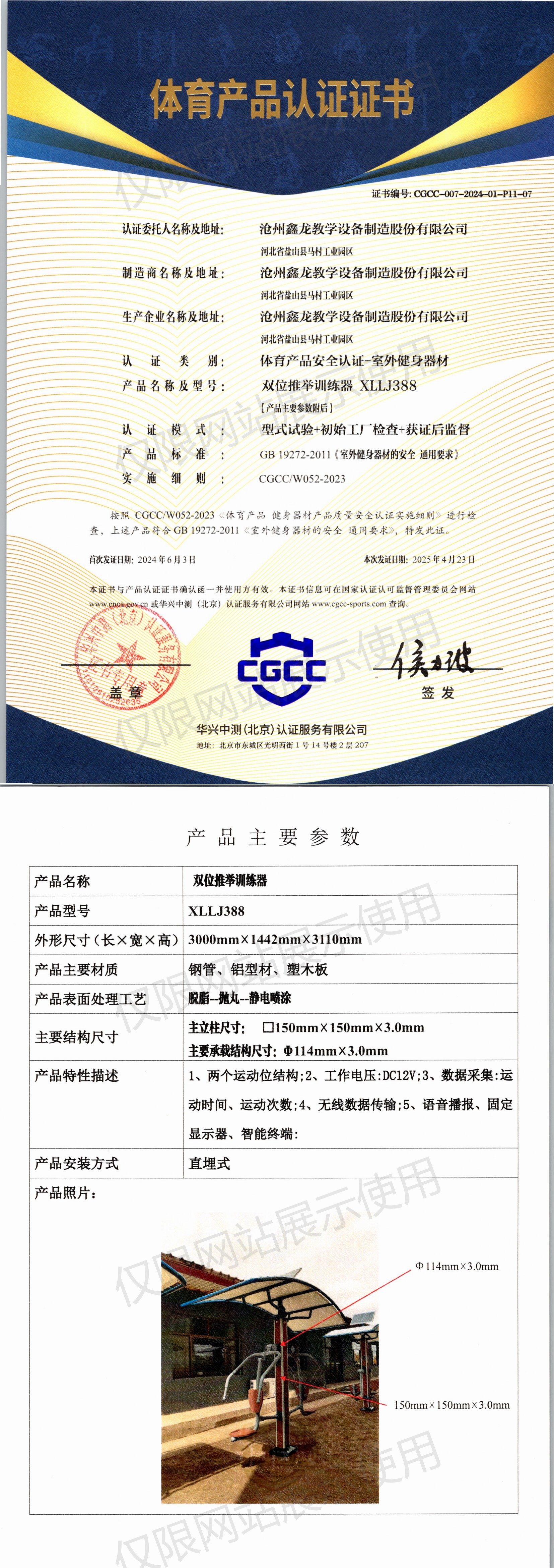 | 7 | 沧州鑫龙教学设备制造股份有限公司 | CGCC-007-2024-01-P01-02 | 三人扭腰器 | XLLJ044 | 河北省沧州市盐山县经济开发区正港工业园区正港路021号 | GB 19272-2024 | 2024-06-13 | 有效 | 查看 |