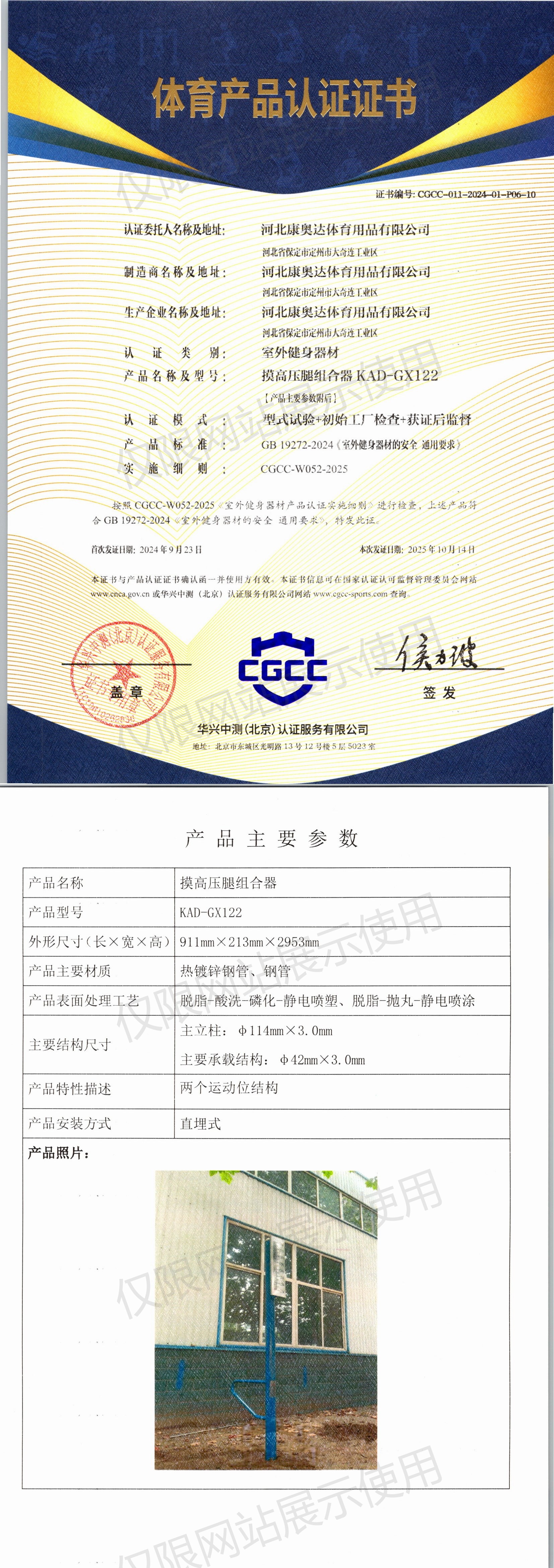 | 1 | 河北康奥达体育用品有限公司 | CGCC-011-2024-01-P06-04 | 肋木架 | KAD-GM050 | 河北省保定市定州市大奇连工业区 | GB 19272-2024 | 2024-09-23 | 有效 | 查看 |